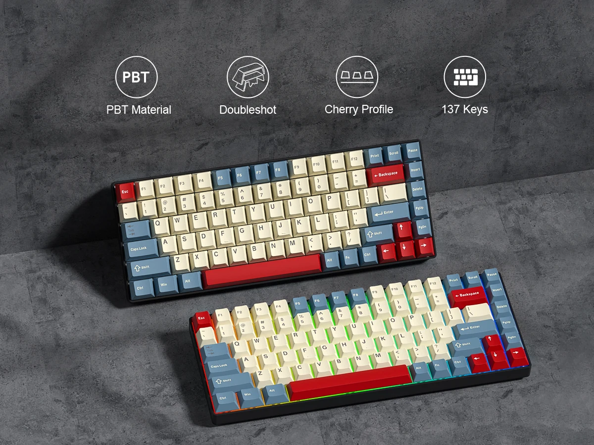 【Classic Cherry Profile Keycaps】Why cherry keycaps? Not only because they can provide you with a more natural and more comfortable typing experience, but also cherry profile is timeless, tactile and tough. That's why it's still popular so far