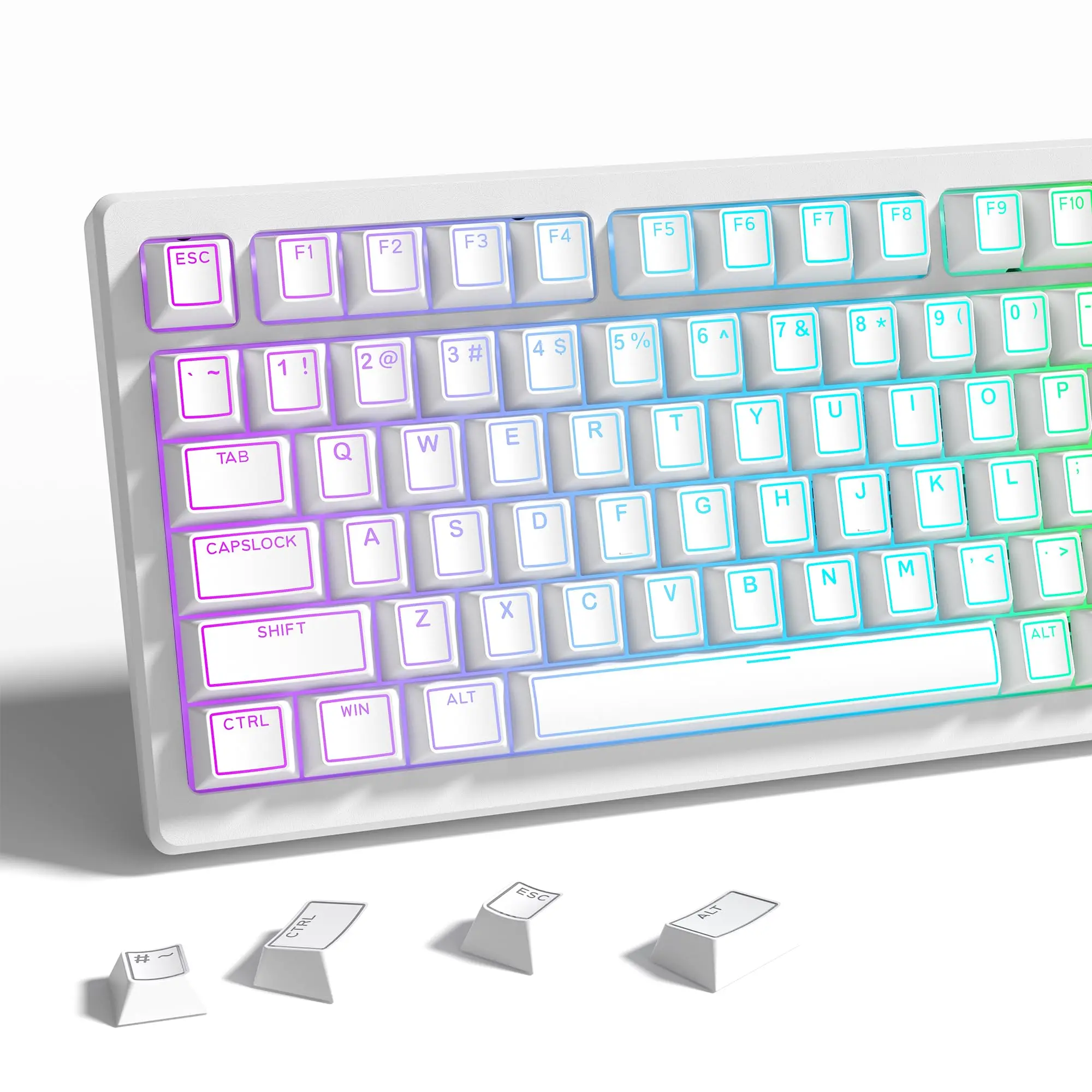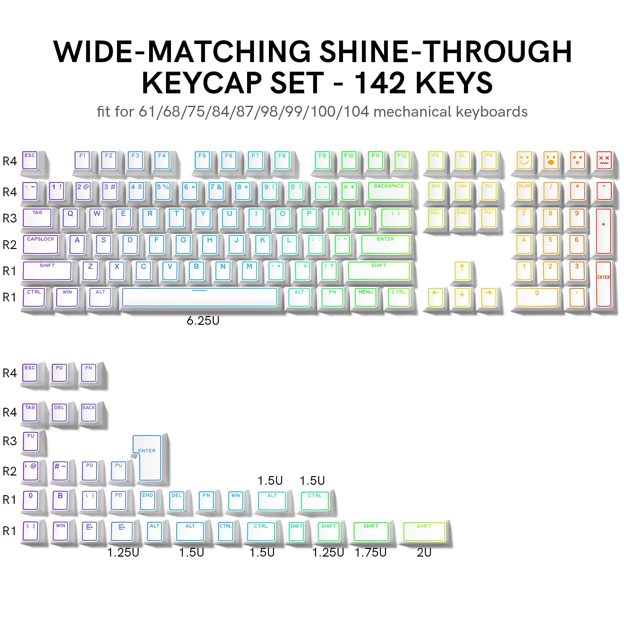 Cool RGB Backlit Double Shot PBT Keycap 142 Keys Cherry Profile White Shine Through Keycaps for MX Switches Mechanical Keyboard