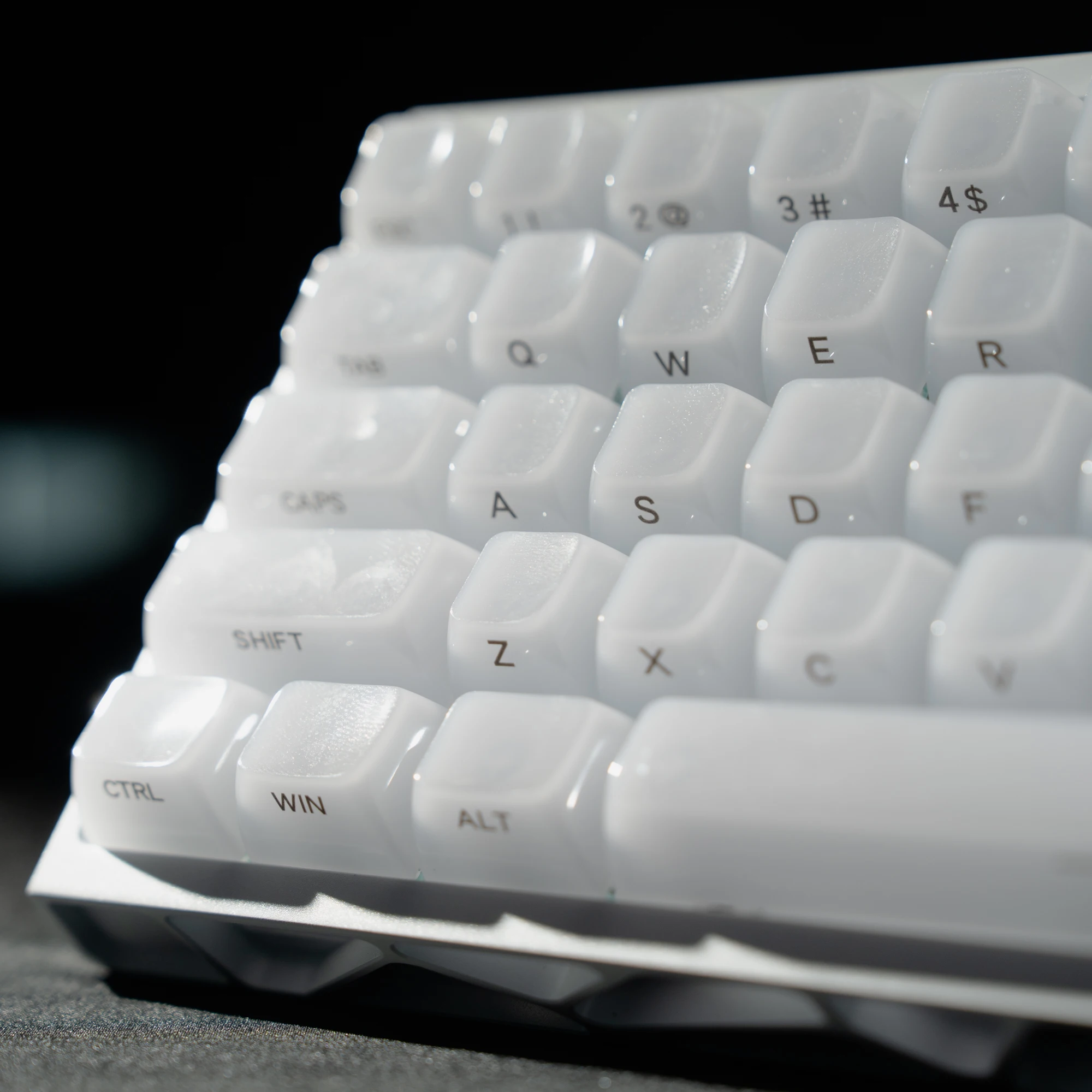 Creamy White RGB Backlit Keycaps Side Print Foggy Transparent Crystal PC Keycaps MDA Profile 115 Keys for MX Switches Keyboard