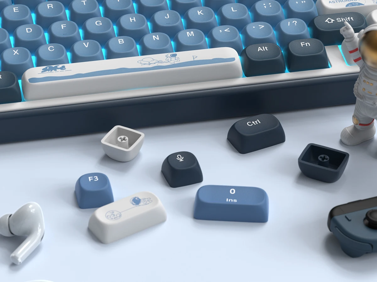 【Interesting cartoon keyboard keycaps】Run with a UFO, fly the moon like a balloon, and fish in space. These interesting patterns are not only beautiful but also add happiness to your life.