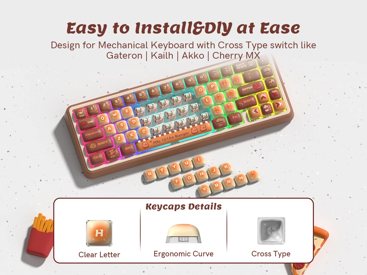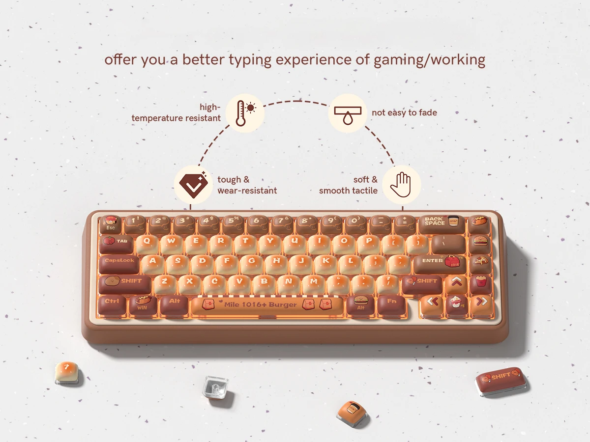 THICK PBT KEYCAPS: Made from thick PBT material, these keycaps are durable and resistant to wear and tear, making them a great investment for any keyboard enthusiast