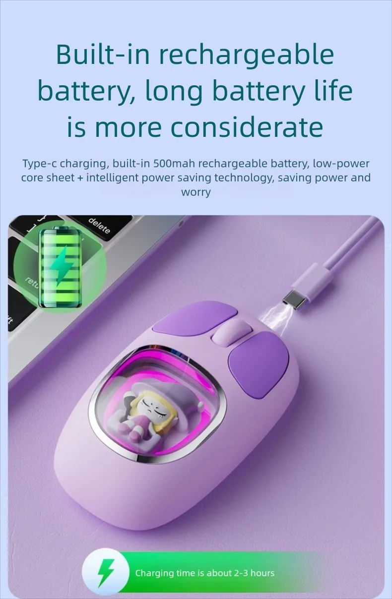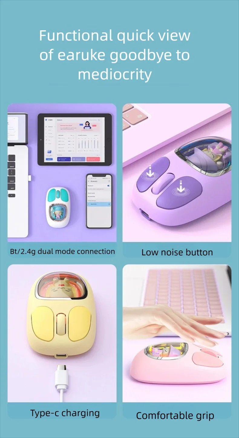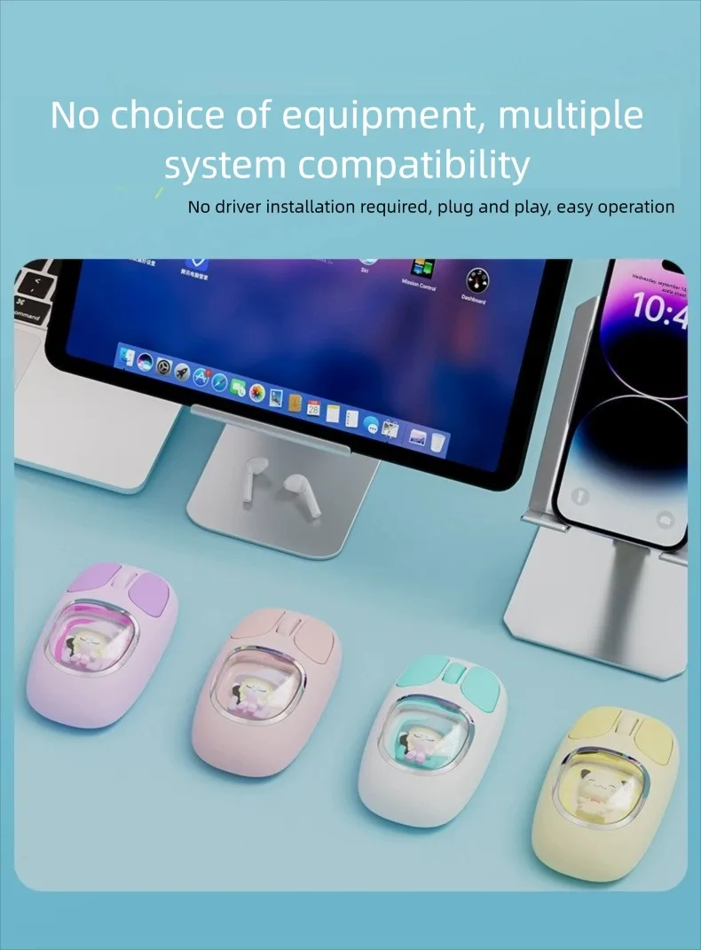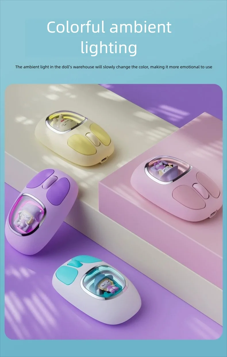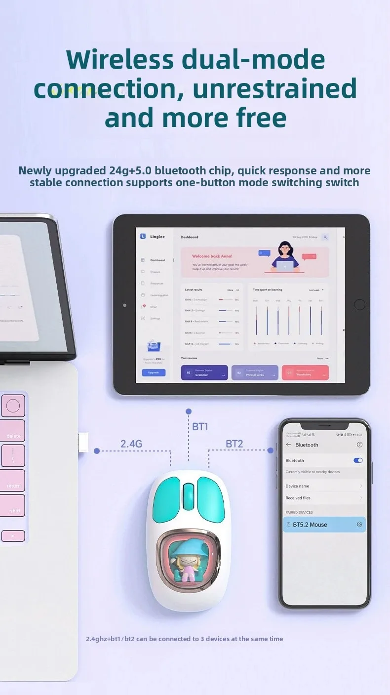 Three-model Bluetooth 2.4G Mouse Transparent Cartoon Backlight Rechargeable Mice for Tablets Laptop Smartphones PC Mute button