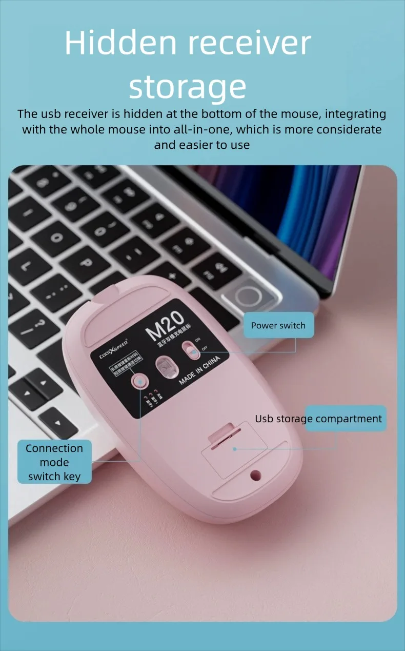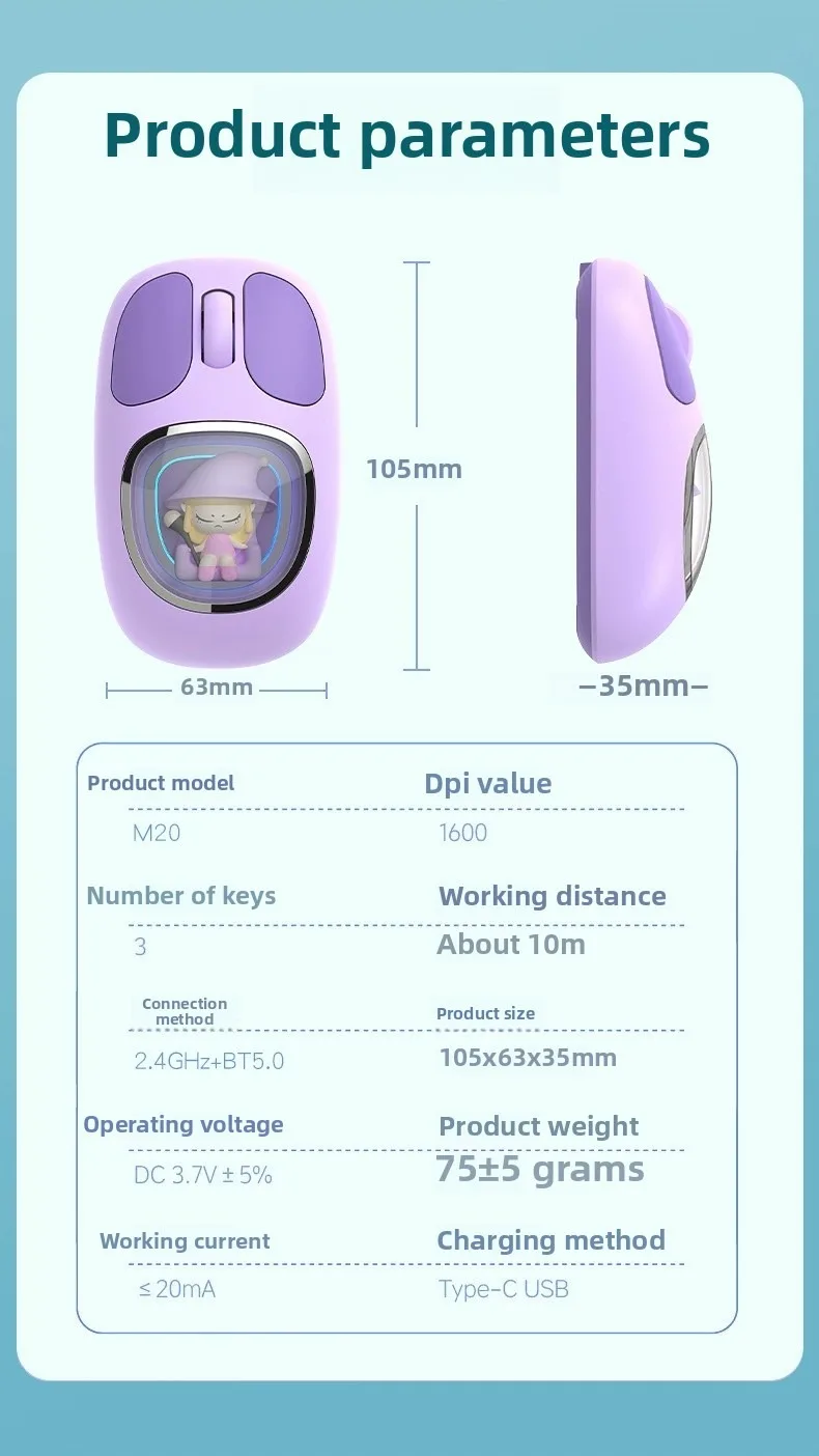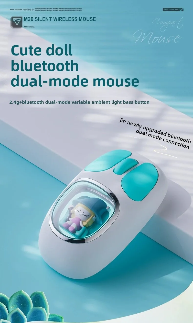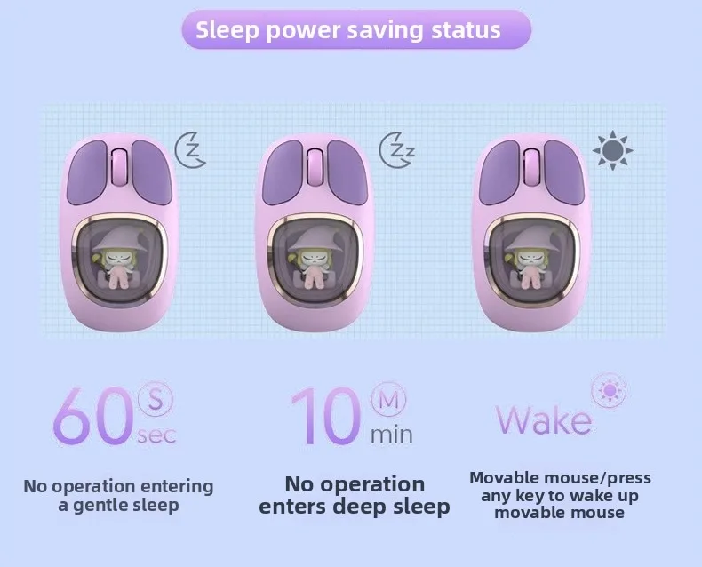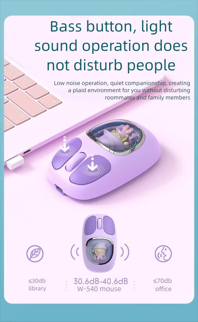 Three-model Bluetooth 2.4G Mouse Transparent Cartoon Backlight Rechargeable Mice for Tablets Laptop Smartphones PC Mute button